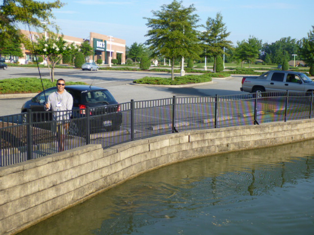 I finalized a deal to sell our Amphibious Assault Craft - the Jackson Kayak Big Tuna - which meant we had to drive down to Virginia Beach today (oh no - twist my arm). We certainly made the most of it! I had loaded the truck last night (in the dark) and miraculously managed to get all the kayak pieces/parts, fishing gear and beach supplies (boogie boards, rollie, fins, tent, etc) - and we were able to get an early start. So stop number 1 - breakfast. This place had to be the best breakfast spot I've ever been too - the pictures speak for themselves - captive audience, clean hook set, awesome fish on and subsequent fight, kids each get a turn, and just as I was going to try and land the big one, the tippet breaks. The barb was pinched down so I figure the fly (pitiful attempt at a bread fly - but ravenously taken) will fall off quickly. I haven't landed one yet, but at this rate, I should be able to cross "carp" off the list of summer targets very shortly. We're eating breakfast at this spot again (and I'll bring a net and stronger tippet next time)!!!