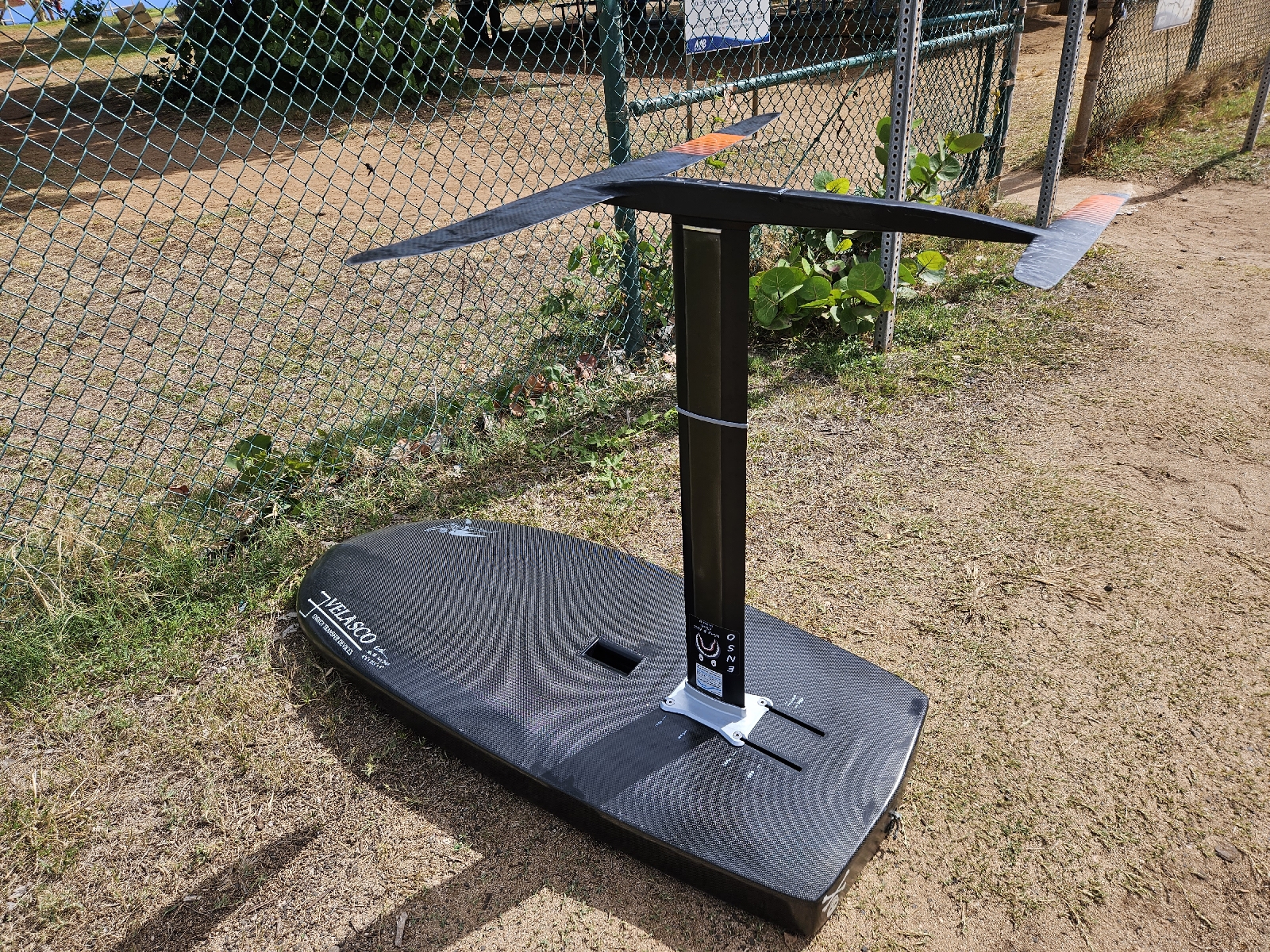 I have to remember (NOTE) that the footstraps need to come way back (or be removed) when using the X-1. I can totally see the relation between the center of lift of the foil and where the straps should be positioned (or where your feet should be placed). One day when there isn't any wind, I'll bolt on the different foils and try to mark where the CoL is lined up to the bottom deck. Takumas are a little back on the current footstrap setup; F One is just right; I can't remember how the Axis felt. I think the Vyper was back.