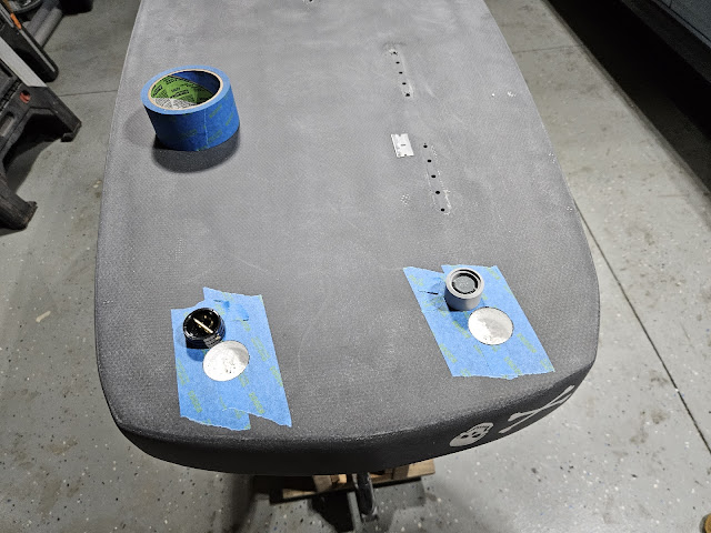 Tomorrow is sanding the touchup spots and the plugs. Then I'll spray the clear coat on and figure out the deck pad layout. That'll get me 24 hours for the adhesive to cure before anointing No.32 on Sunday when the winds pick back up!!!!