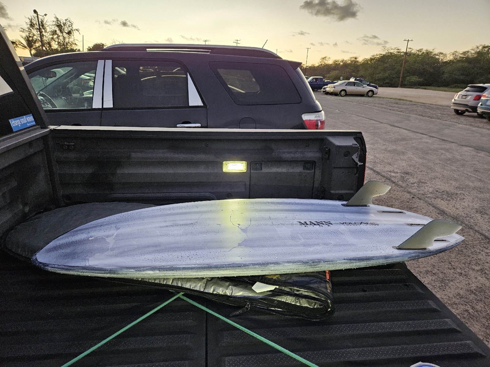 It was super low tide - so I opted to surf. And for the given conditions, I brought out the Firewire Sweet Potato (in Volcanic - because it already had the Wayne Rich Nightmare Twins on board).