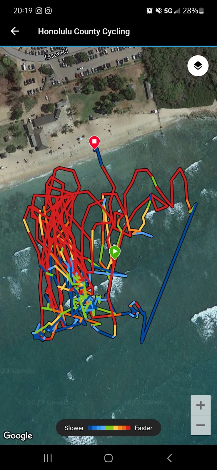 From this graph, I caught 18 waves (but this was over nearly 2 hours - so not as productive a session as the past couple of days).