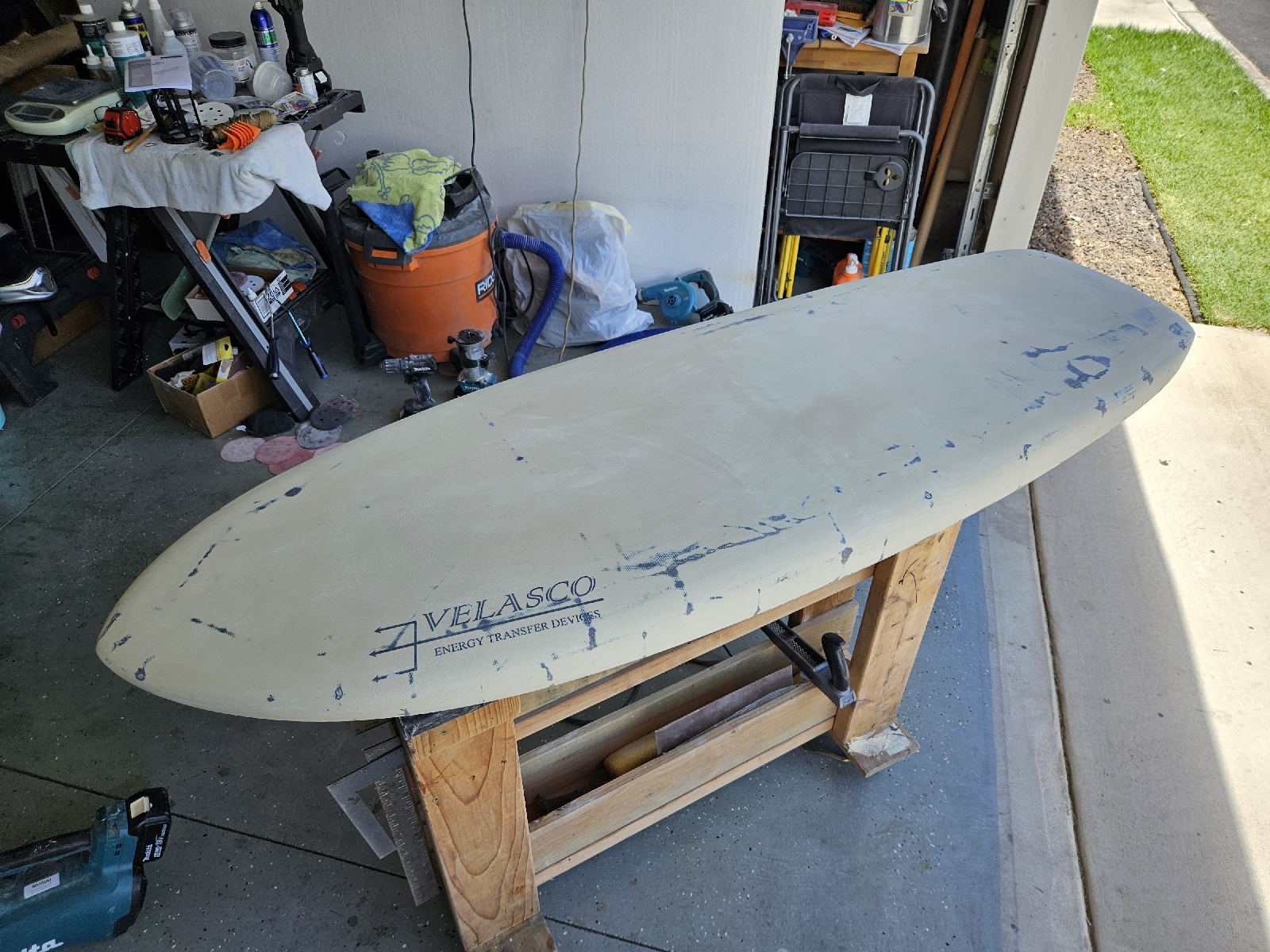 After sanding I even went ahead and washed the sanding dust off the board.  Here's the top deck all done.  I need to still cut up the deck pad and get it applied (after I go to Napa and see if they have matte clear coat).  But this is essentially done.
